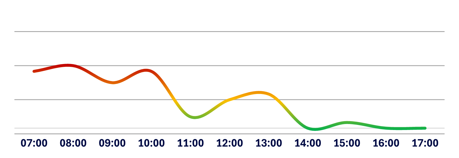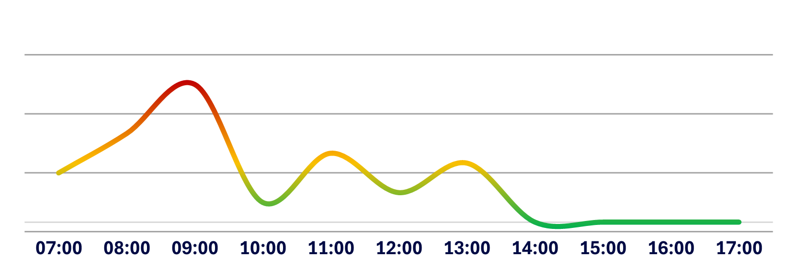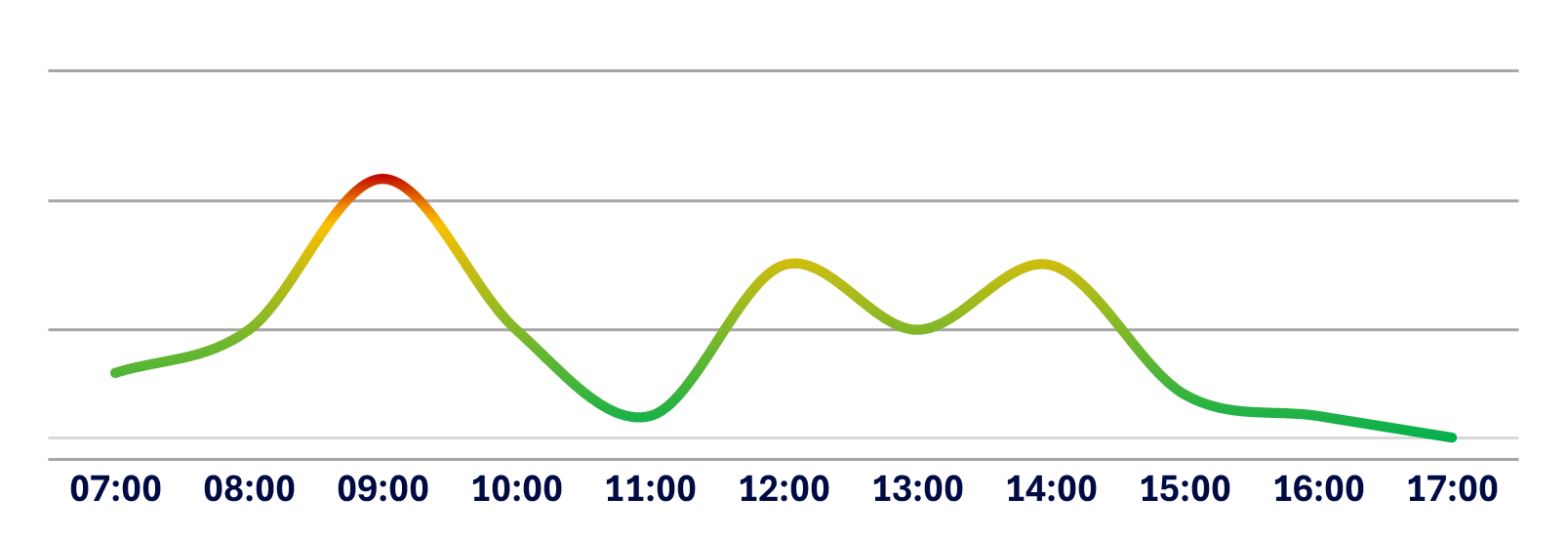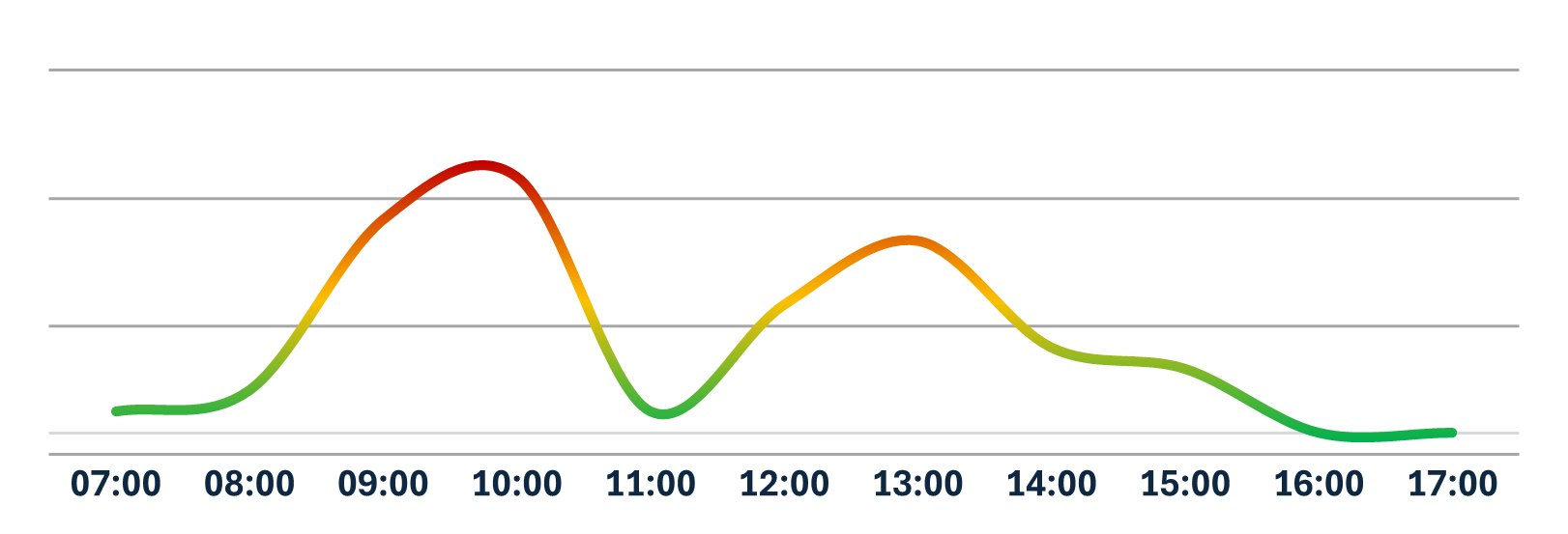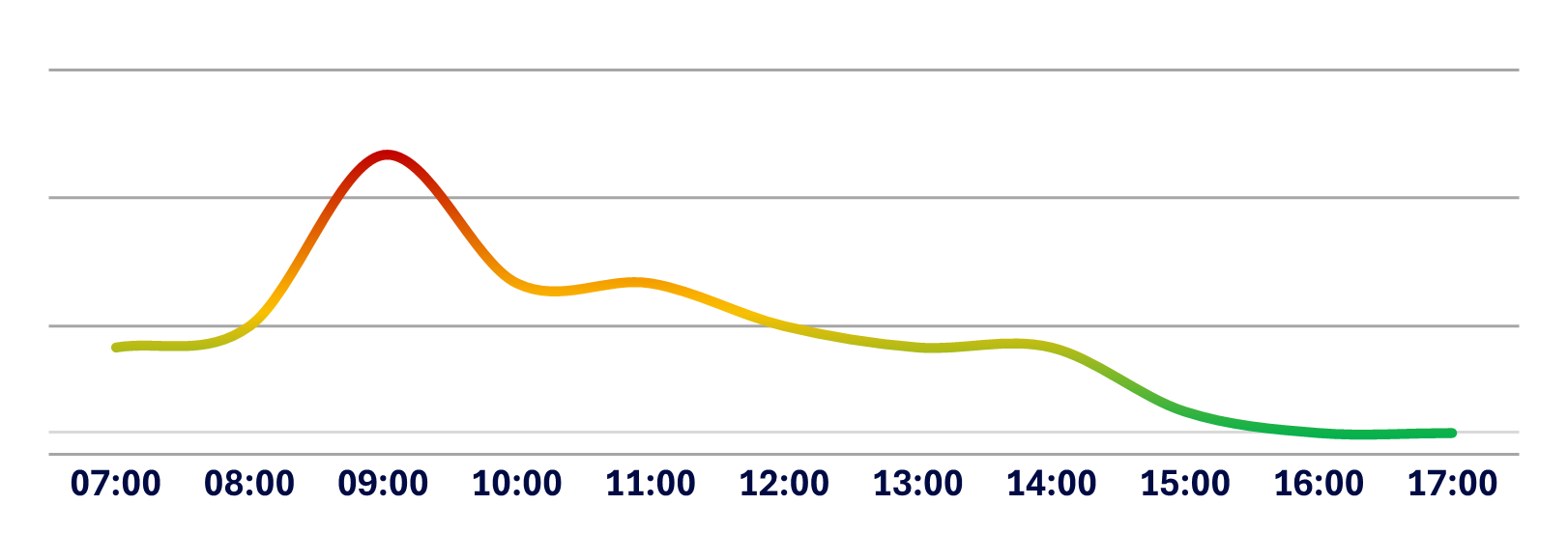 Below is a graphical representation of the average traffic flow from Monday to Friday at Medistri CH. The curve illustrates the busiest and easiest moments to charge or discharge your goods based on historical data.