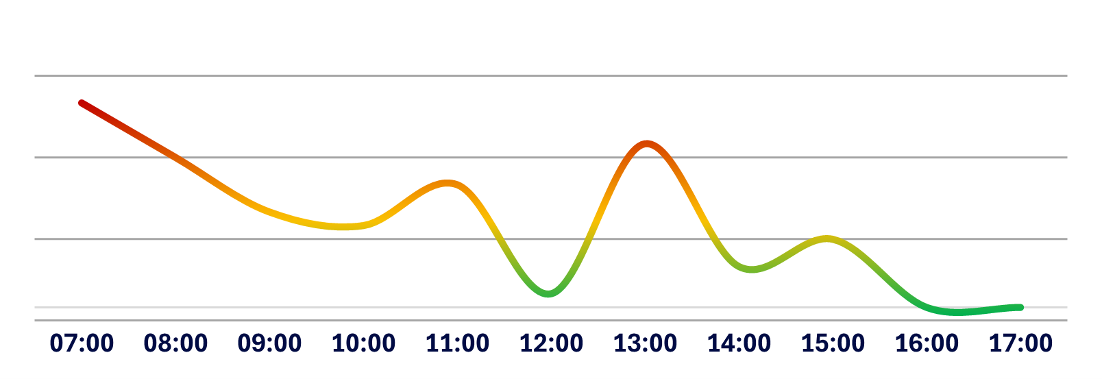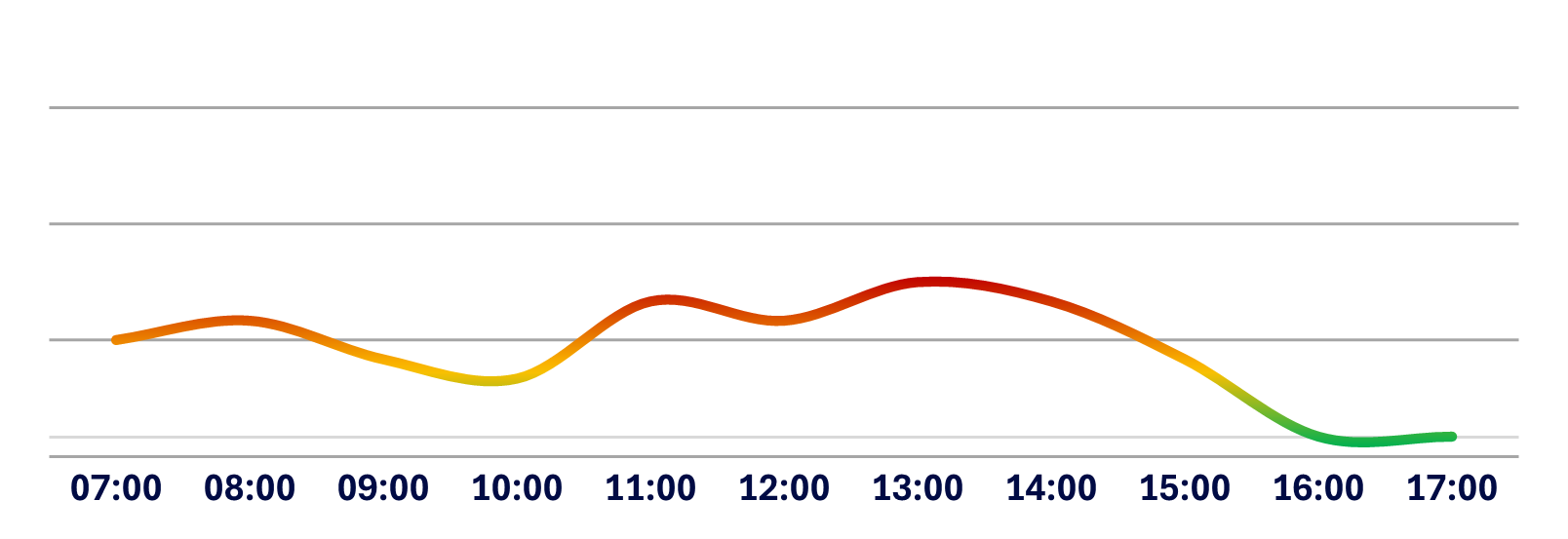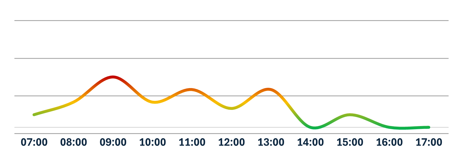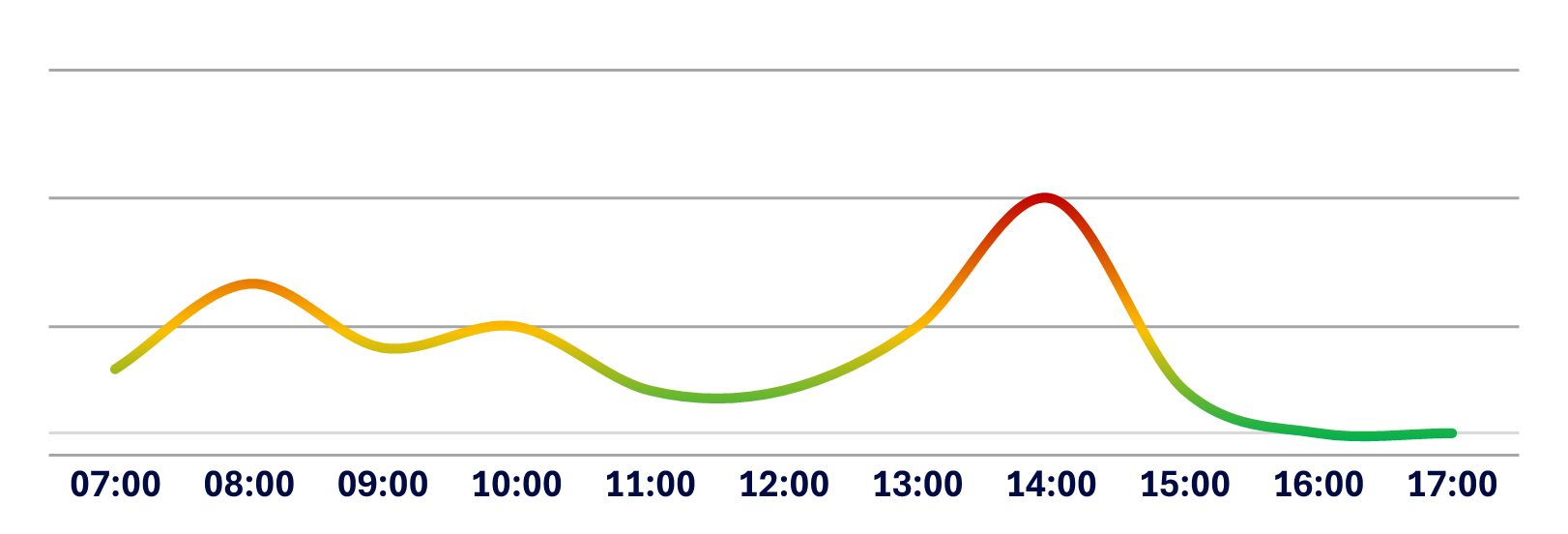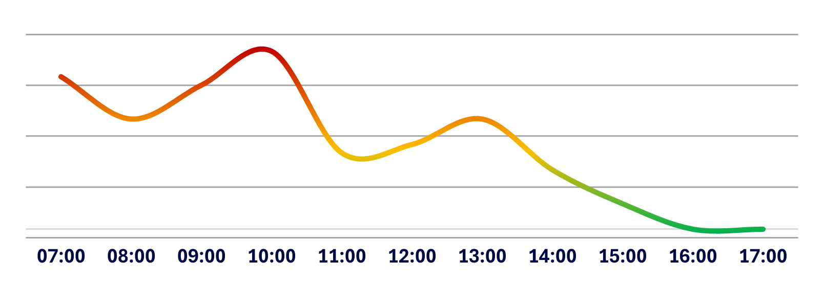 Below is a graphical representation of the average traffic flow from Monday to Friday at Medistri CH. The curve illustrates the busiest and easiest moments to charge or discharge your goods based on historical data.